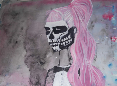 4. For the skull: Make a half circle outline for the top of the skull and a slightly smaller one for the jaw (not intersecting).