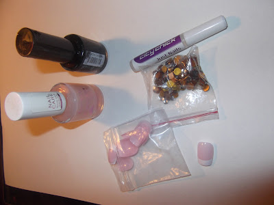 1. Do two solid base coats of your choice color—I chose a shimmery purple since black and white looked a little stark.